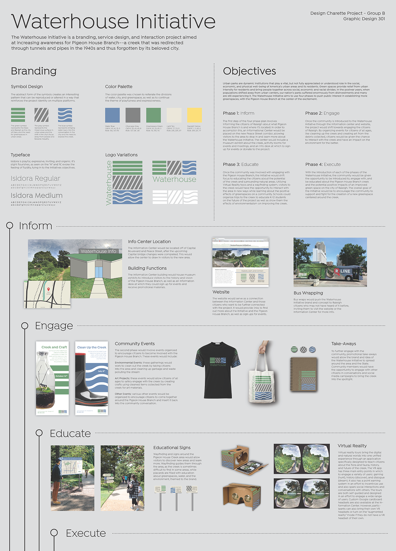 A Branding, Service, and Interaction Design Project Focused on Working on getting People to rethink and use Pigeon House Creek in Downtown Raleigh, a previously place lost in time.